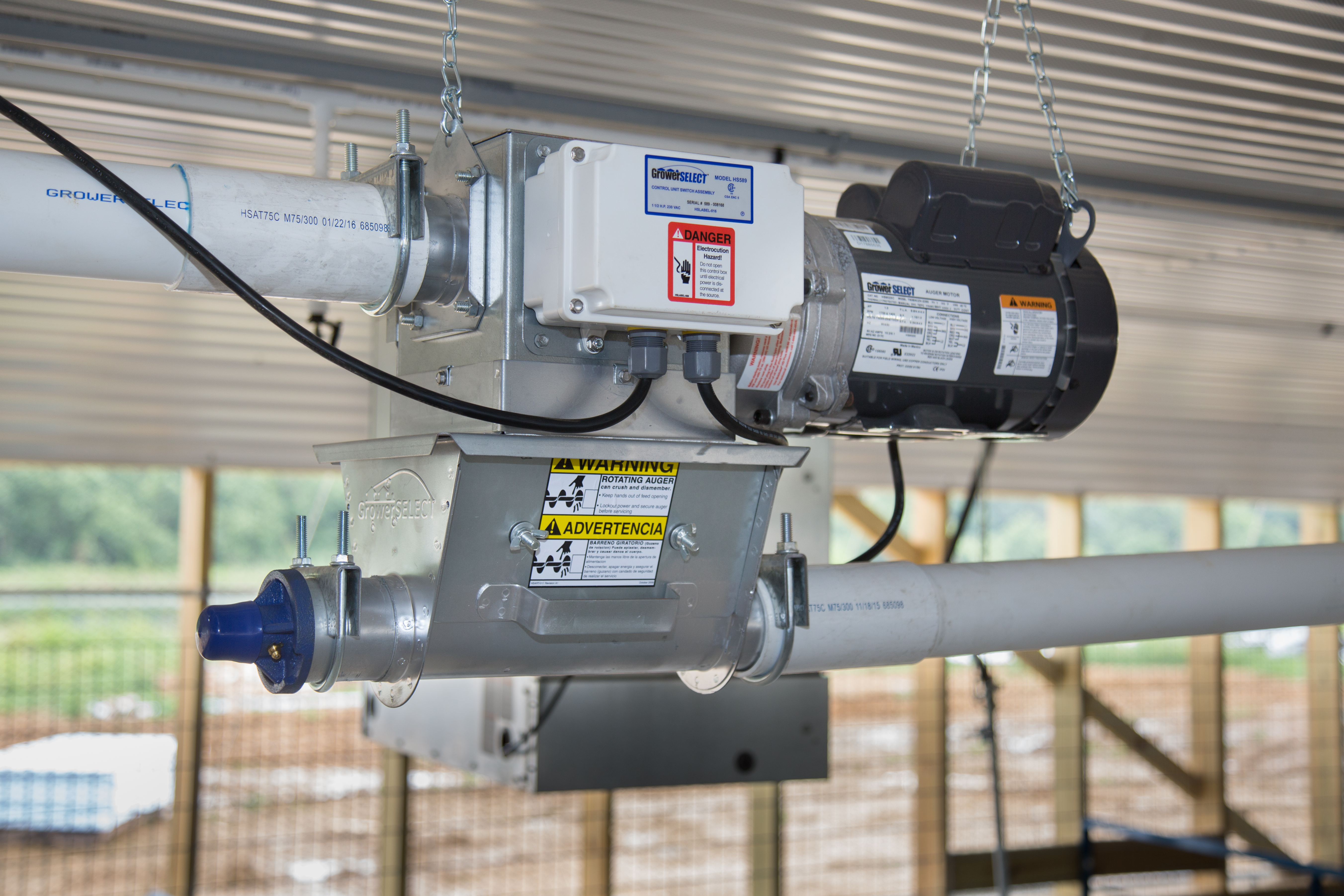 Приводы гибкого шнека GrowerSELECT производятся строго в соответствии со спецификациями, что позволяет им работать на полную мощность в тяжелых производственных условиях кормления свиней и сельскохозяйственной птицы. В комплект привода GrowerSELECT входит электродвигатель, зубчатый редуктор и ведущая шестерня; доступны в 0,3, 0,5, 0,75, 1 и 1,5 л.с. для подключения к моделям систем гибкого шнека 55/200, 75/300 и 90/350. Одно и трех-фазные варианты приводов доступны с мощностью в 1 л.с. и 1,5 л.с.